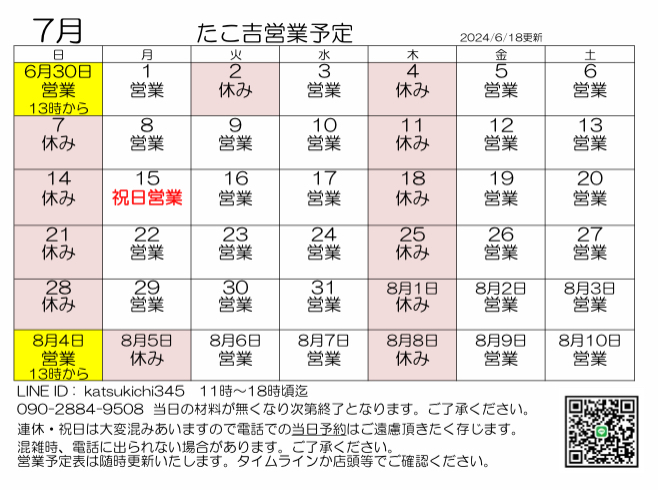 の営業予定です