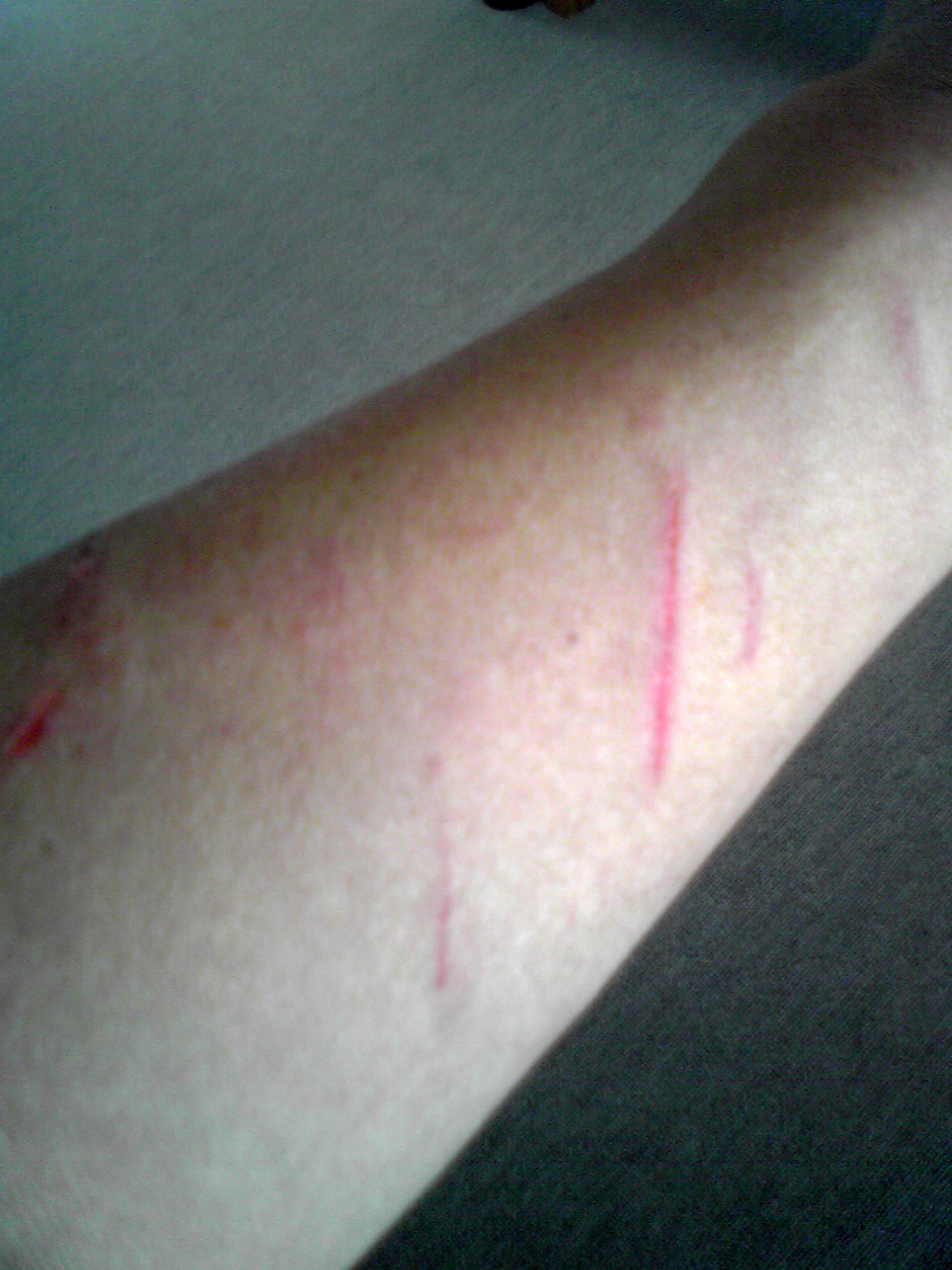 今日は、庭の選定もお願いされて、紅葉の木、柿の木までは良かったのですが、梅の木の剪定中、切った枝がまっすぐ落下。私のかよわい腕をすり抜けてゆきました。おかげで、左右の腕に裂傷が・・・。痛い。しみる。とほほ。 |