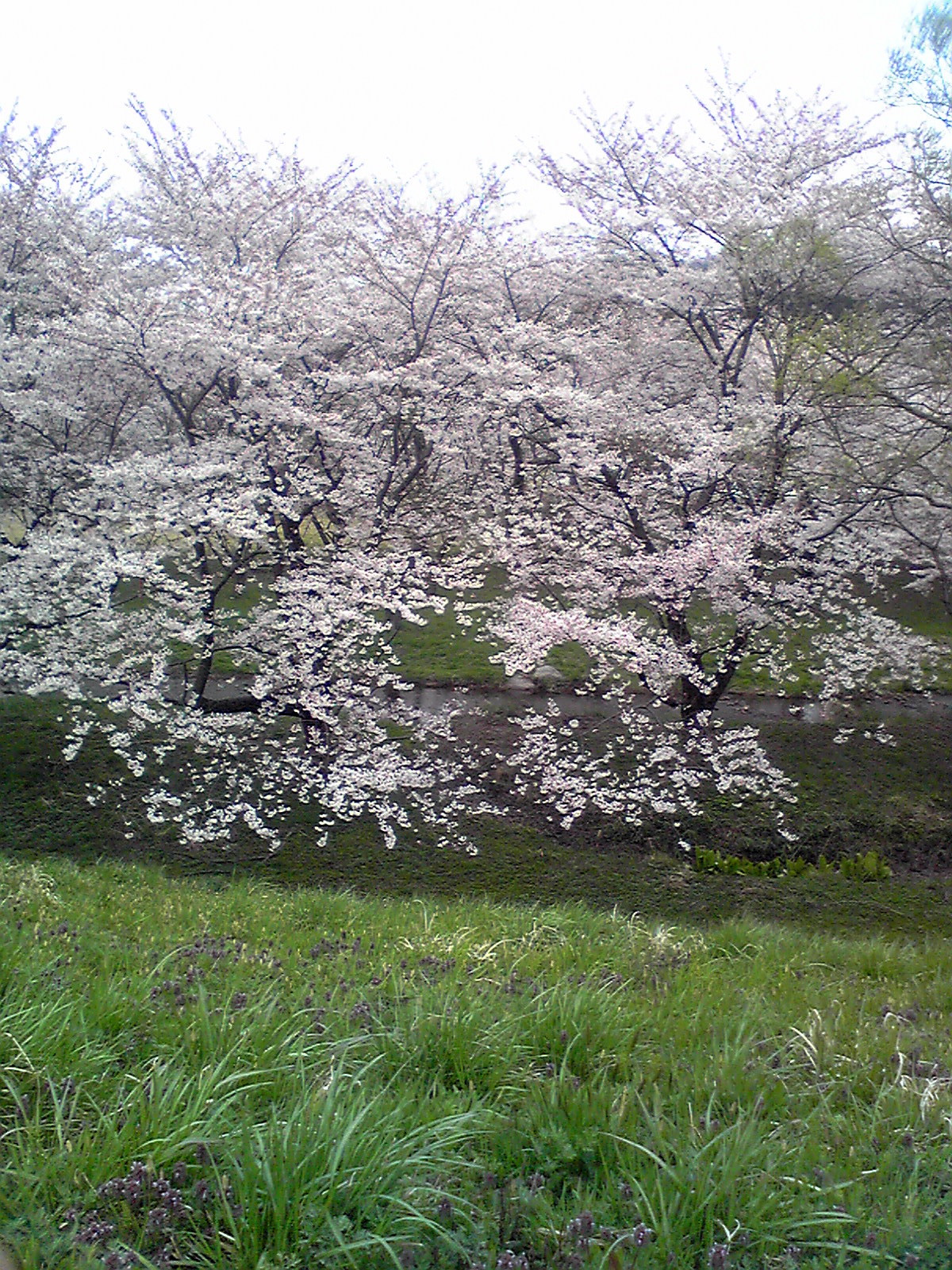 地面から桜が咲いている・・・とみてみると、本当に生え出たのかな? と思ってしまいました。 でも、よーく見てみると上の桜の木から散った桜でした。でも・・・ もっとよーく見てみると・・・花弁にとがった草が刺さっている! 二か所刺さっているのが見えますか? なんと無残というのか、素晴らしいというのか・・・。 |