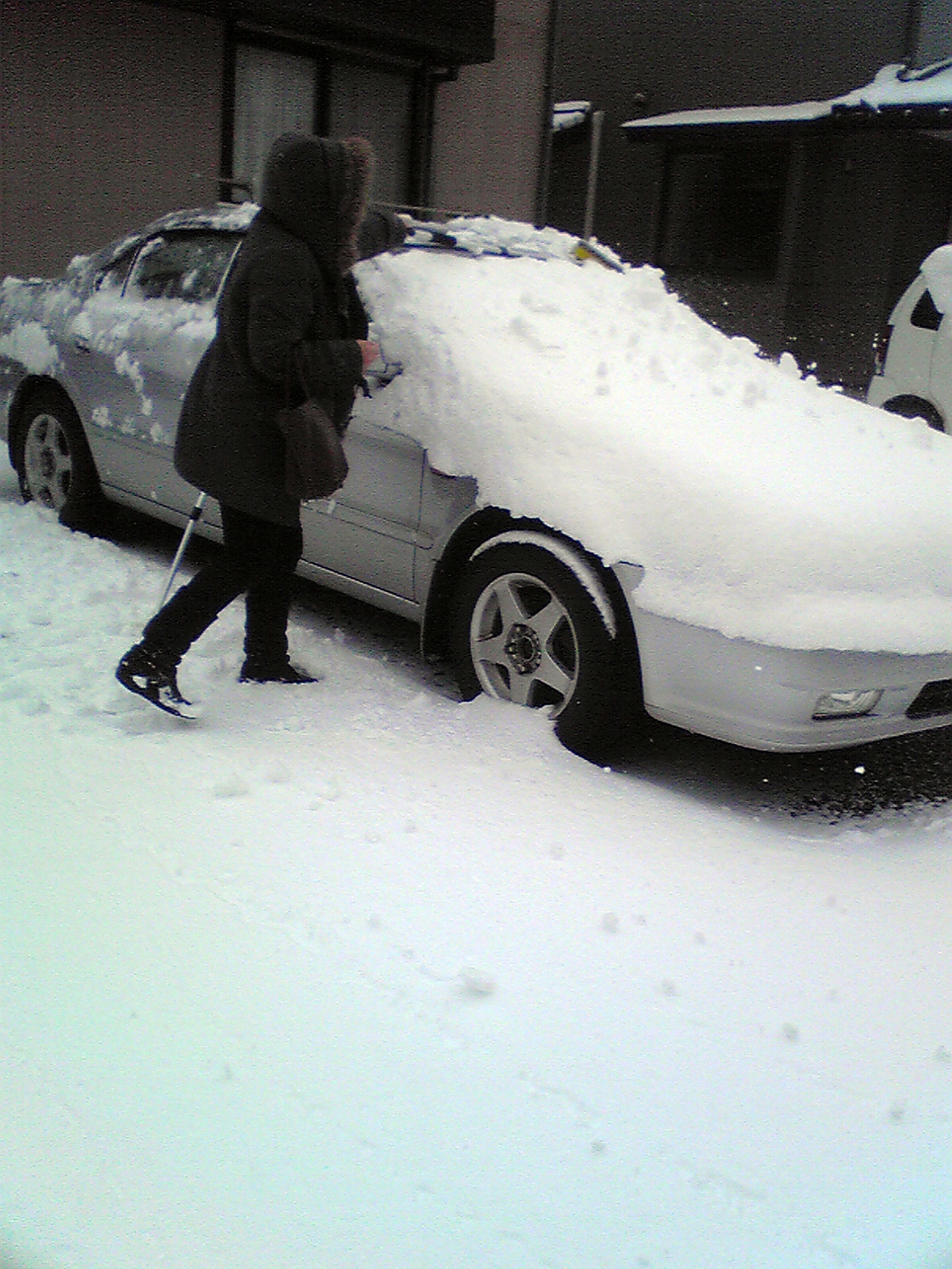 やっと溶けたのに、一晩のうちにまたこんなに積もっちゃいました。