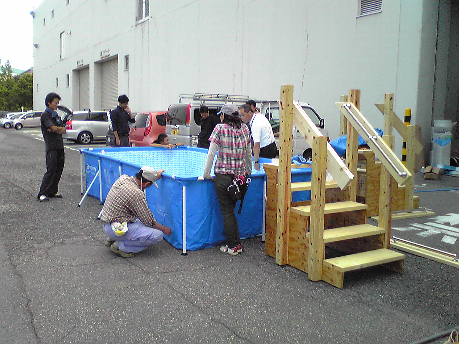 アメリカ製簡易プール組み立て完了。今度は漏れないかな。