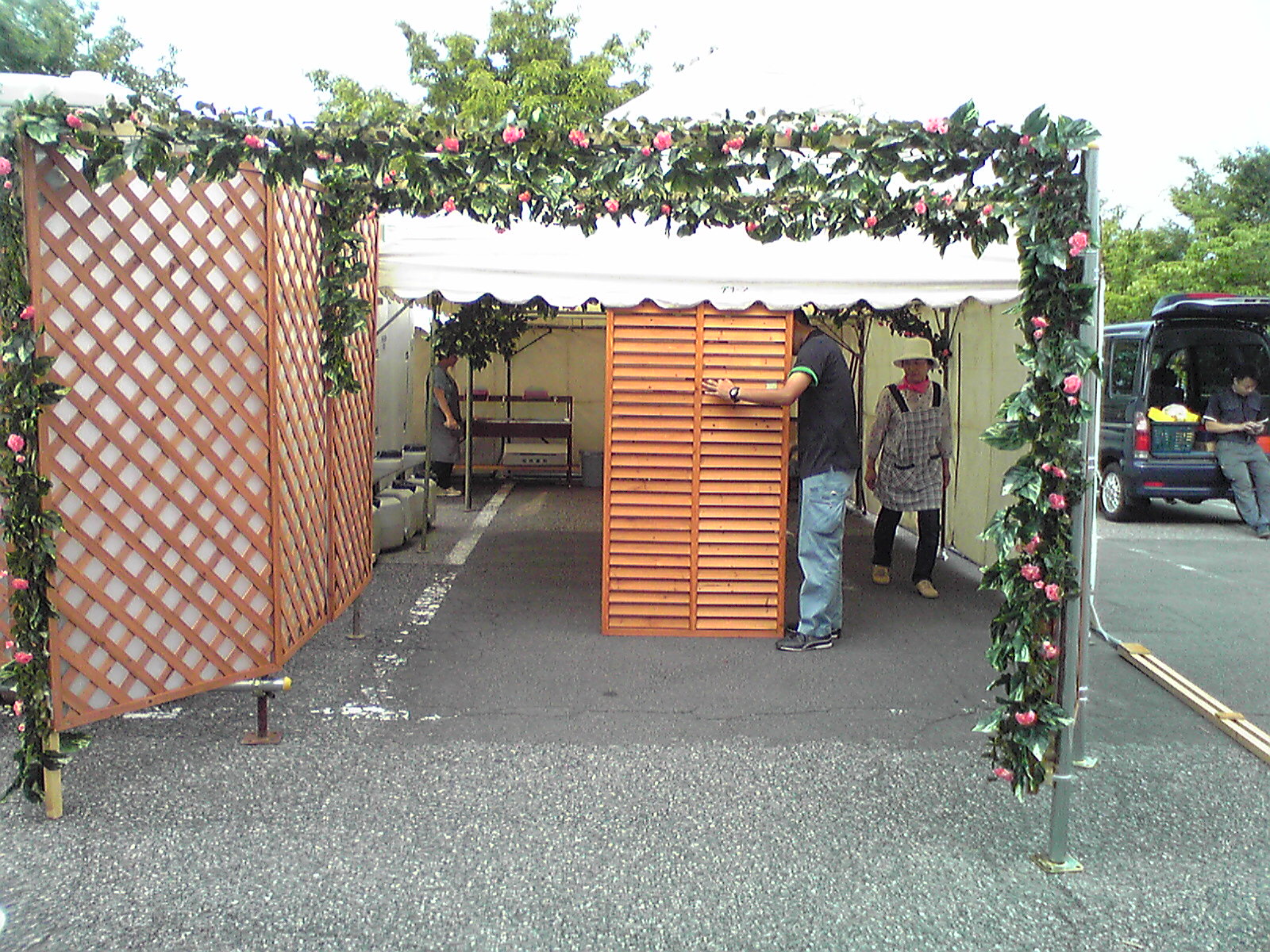 まるで何かのお店のような入り口。実は仮設トイレの入り口。