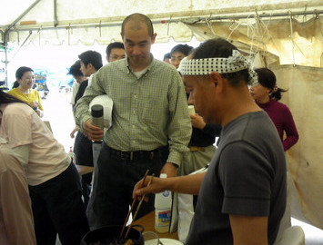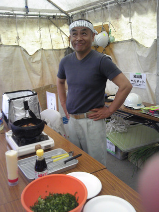本日二度目のたこやきをふるまいました。 みなさんに喜んでいただき光栄です。 ただ、今日は一人にわずか一個だけ。 もっと食べて頂きたかったのですが。 ごめんなさい。また次回に。 新津現場も残すところあとわずか。金曜日には撤収です。 遠くから来られたみなさんお気をつけて。 そして、またどこかでお会いしましょう。 たこ吉店主より。 |