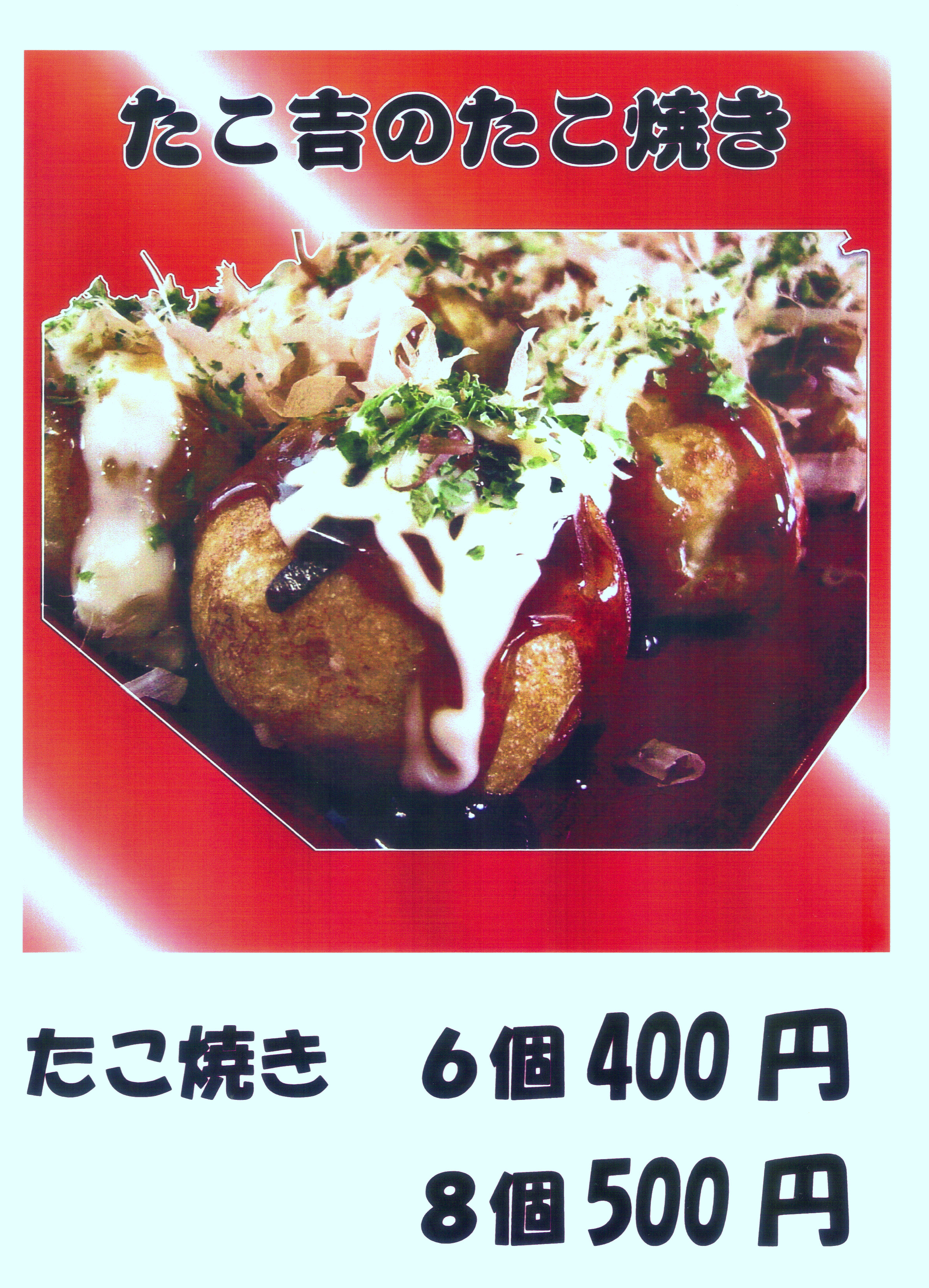 四月末から五月にかけての大型連休にたこ吉再開致します。