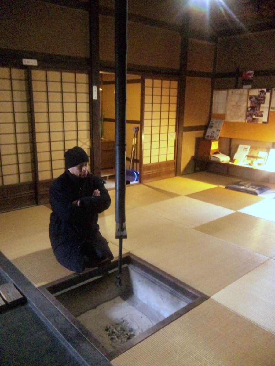 武家屋敷の茶の間の囲炉裏でちゃっかりおちゃんこ。