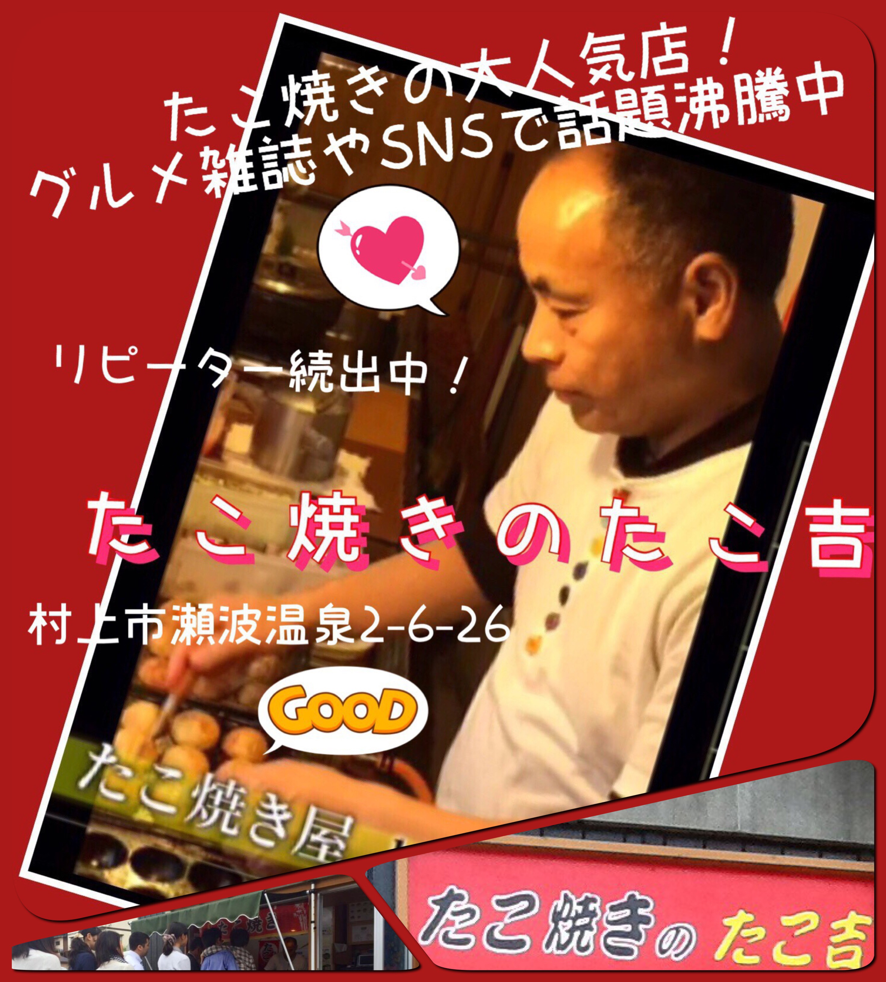そのせいもあり、たこ吉は大忙しとなりました。 5時過ぎには完売してしまいました。 本日はありがとうございました! 村上市内の方をはじめ、新潟市や胎内市からわざわざお出でいただき感謝致します。 PR |