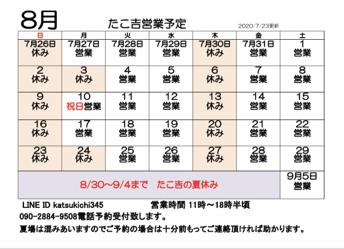 今年は、静かになると思いきや。 瀬波温泉は、ものすごい人出。 観光客や海水浴客で混雑しました。 たこ吉も大忙しでした。 昨年より多いお客様でした。 コロナはいったいどこへやら。 |